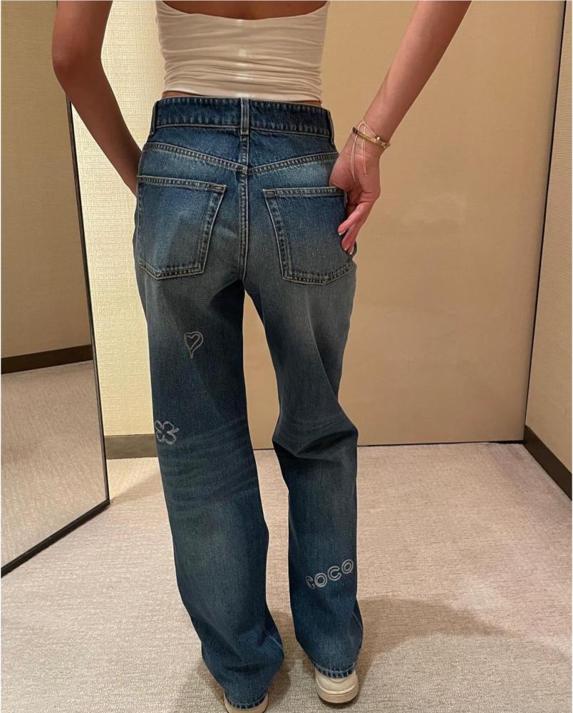 مميزات 2024 جينز شانيل دينم باهت مطرز أزرق :