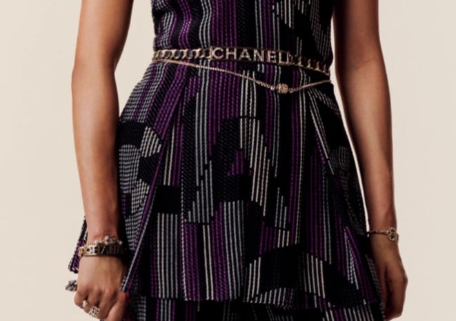2024 شانيل سوار حلزوني بنهايتين عبارة عن دائرتين تتوسطها شعاري شانيل مرصعه بالكرستال