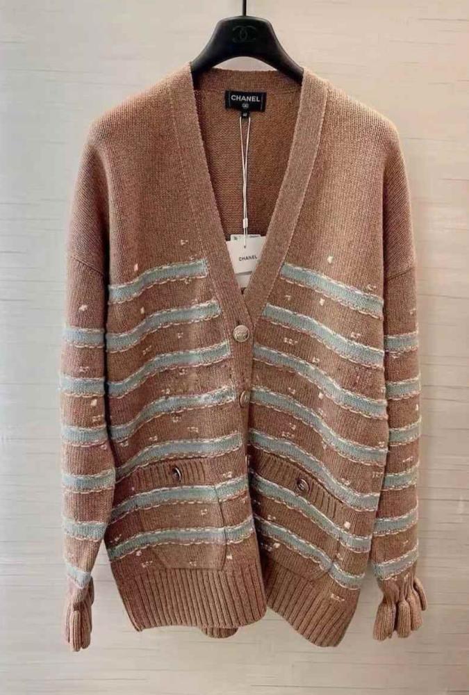 - اسم المنتج :2024 كارديغان شانيل كشمير بني فاتح