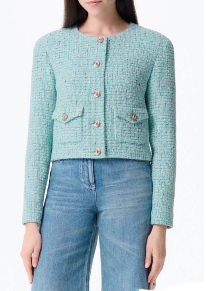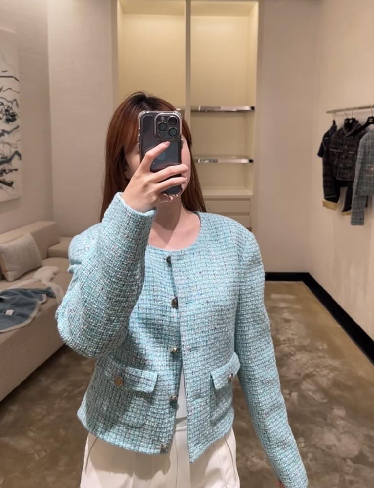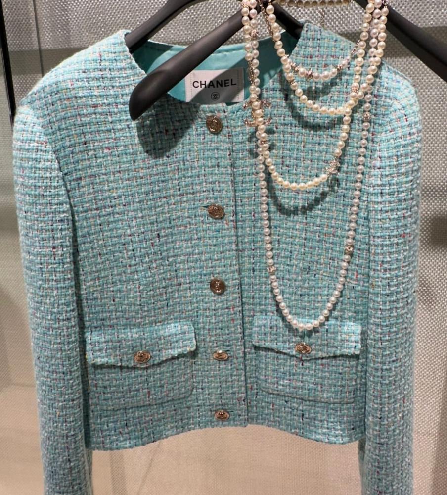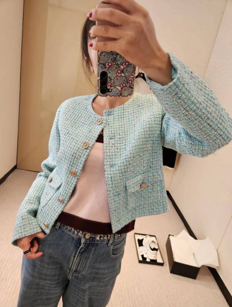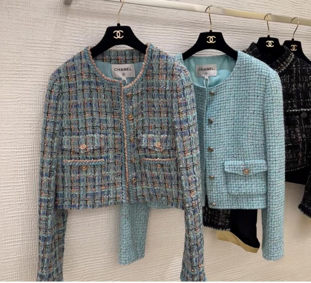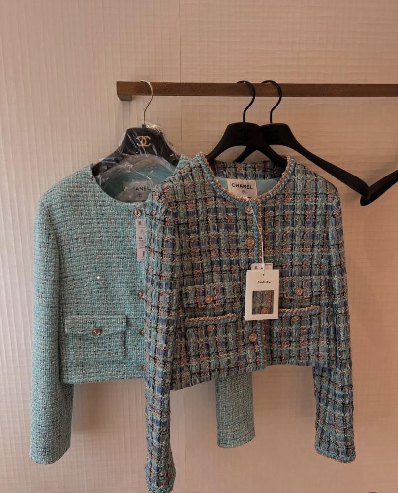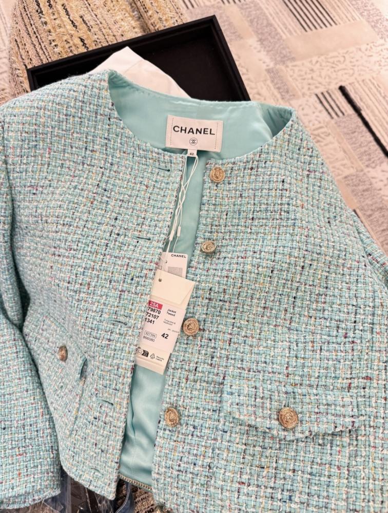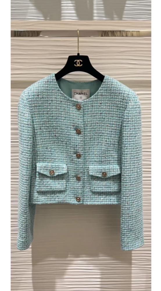 2025 سترة شانيل جاكيت تويد خضير فاخر