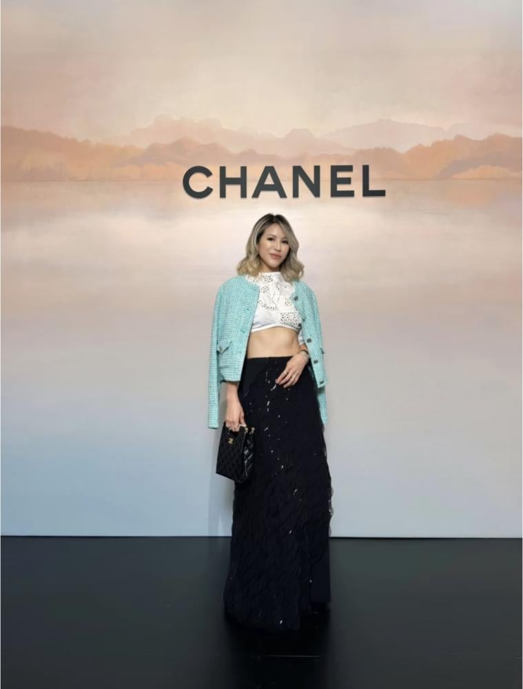 The dreamlike 2024/25 Métiers d’art collection was unveiled at dusk on the shores of the West Lake. A turquoise-blue tweed ensemble, handmade by Lesage and enhanced with silk chiffon ribbons, makes way for a romantic allure.