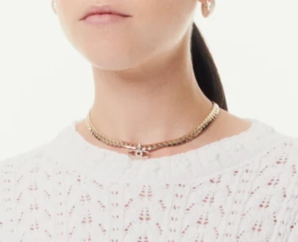 2024 Chanel gold hoop earrings with side gold CC logo encrusted with crystals
