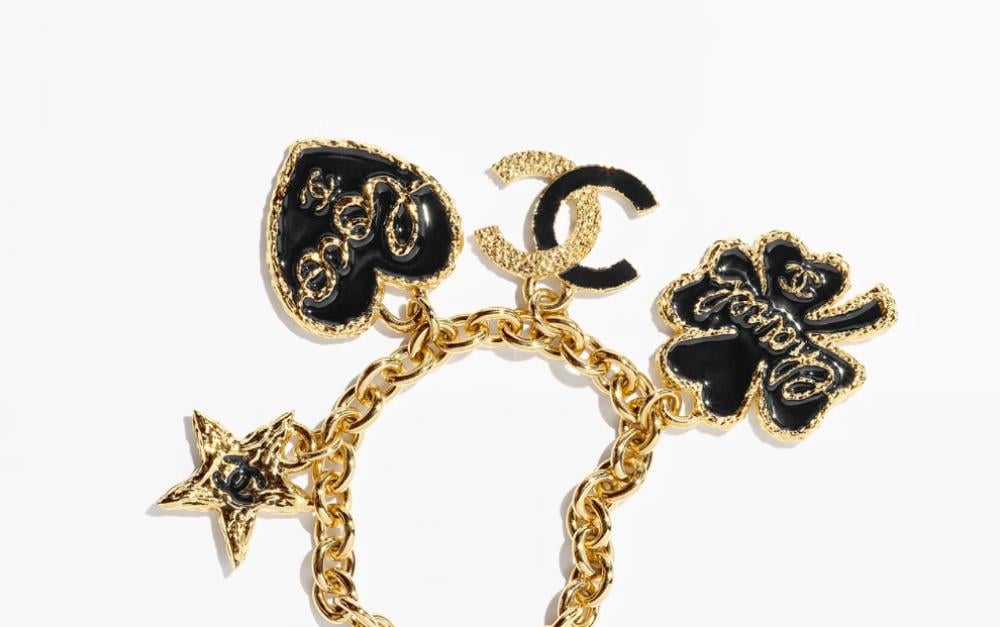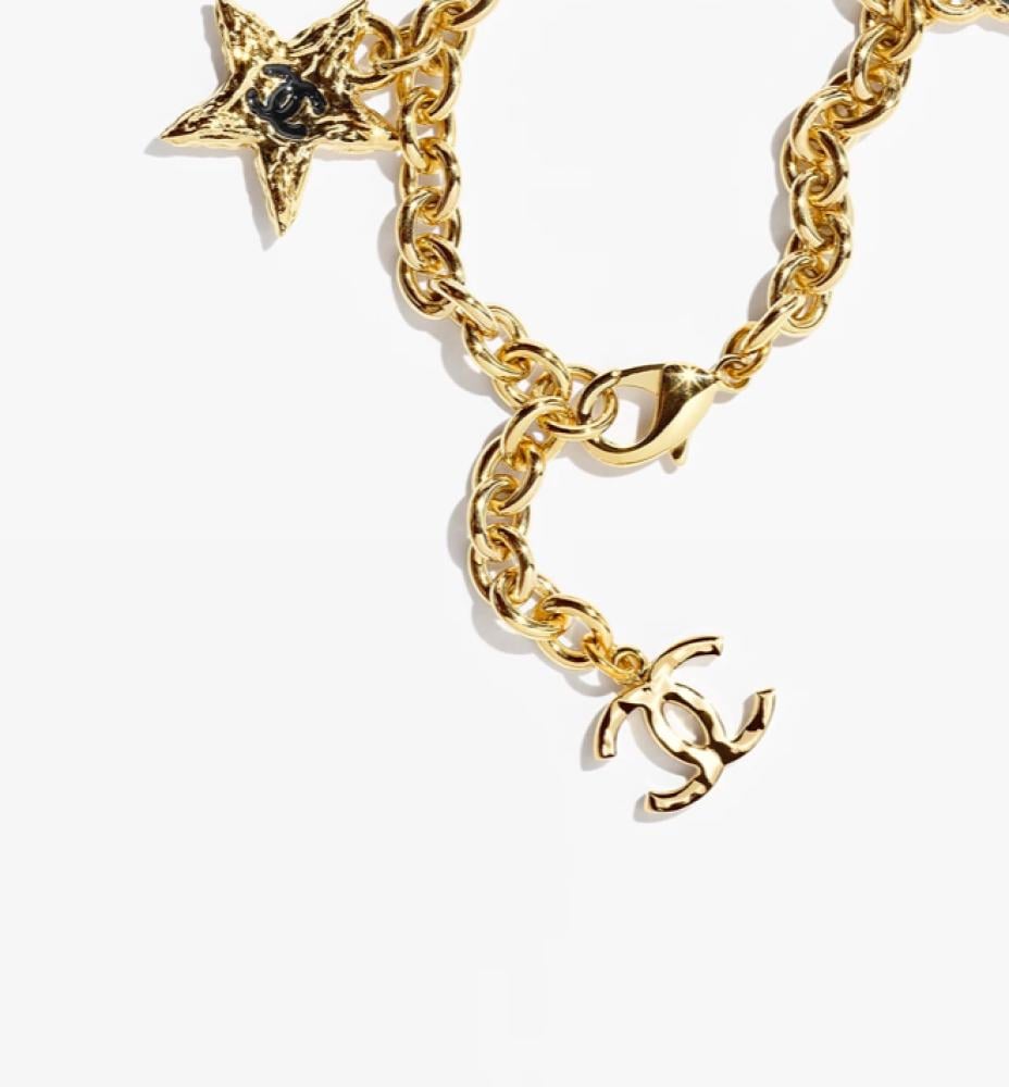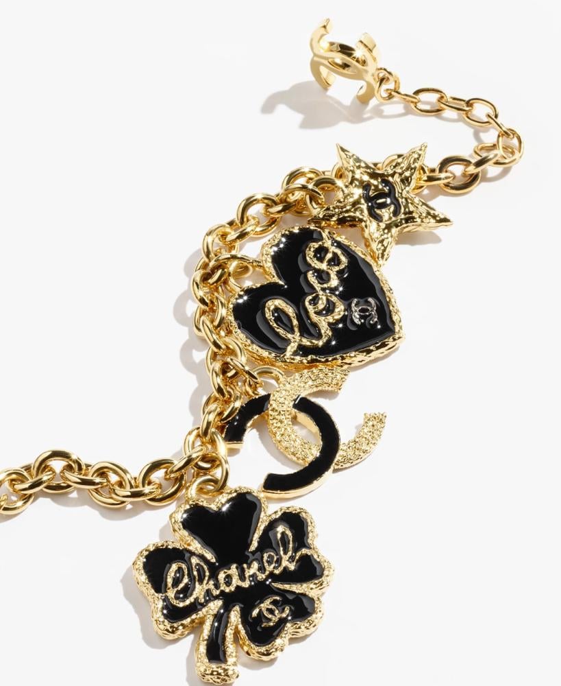 2024 Chanel Gold Metal Pendant Necklace, Black