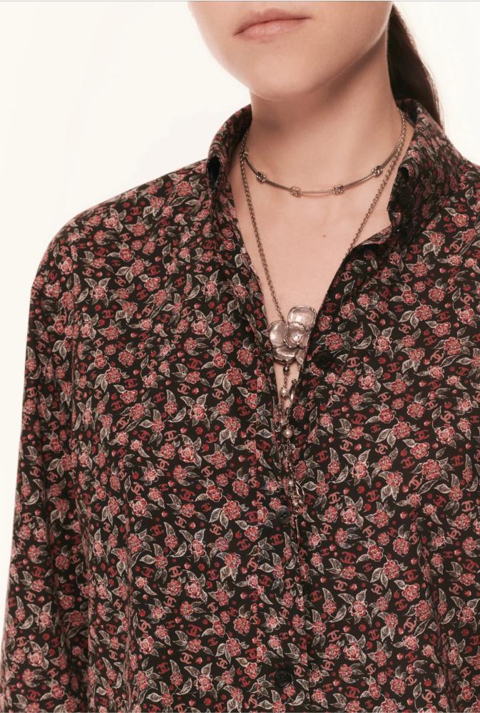 - Product Name: 2024 Chanel Blouse with Patterns and Long Sleeves